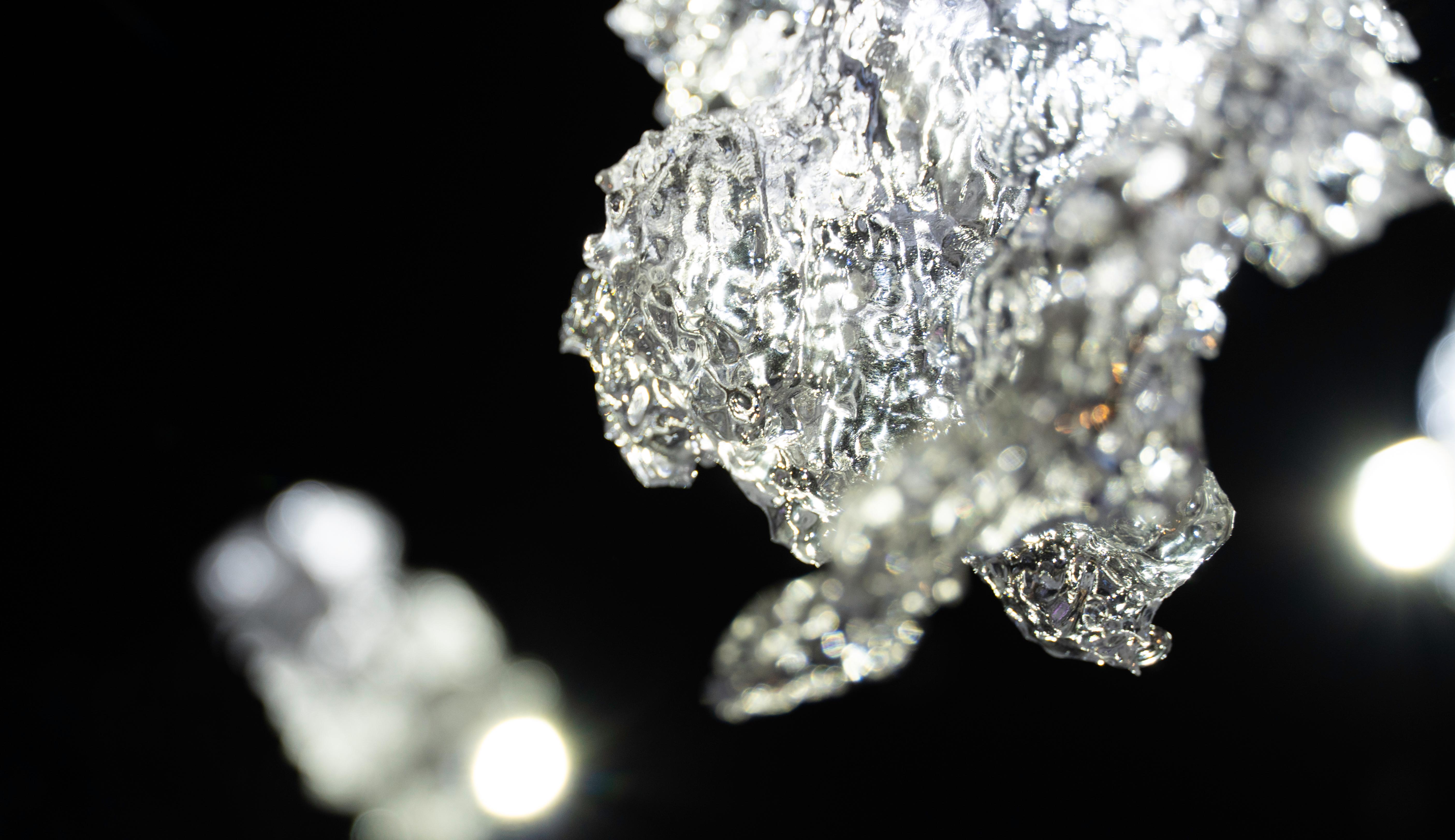 Each recording undergoes detailed processing to extract nuanced details, ranging from the gentle flow of water streams to the bustling noise of construction activities that portrait human traces. Following the completion of sound sampling, recordings are analyzed using Sonic Visualiser(a software that quantifies and analyzes sound to image), which generates chromatogram and black-and-white spectrogram images derived from the level values of the audio samples. These images are then employed as procedural textures in Blender to texture our collected sample 3D models. The primary mesh is physically displaced by the power of frequency and the highest values are adopted as a falloff map and marked by a different shader. Now, we have 25 unique sound matter that exhibit crystallized surfaces, physically embody the sound textures, while preserving the original sample structure. We decided to print these objects with 3d printing materials of black resin and transparent resin.